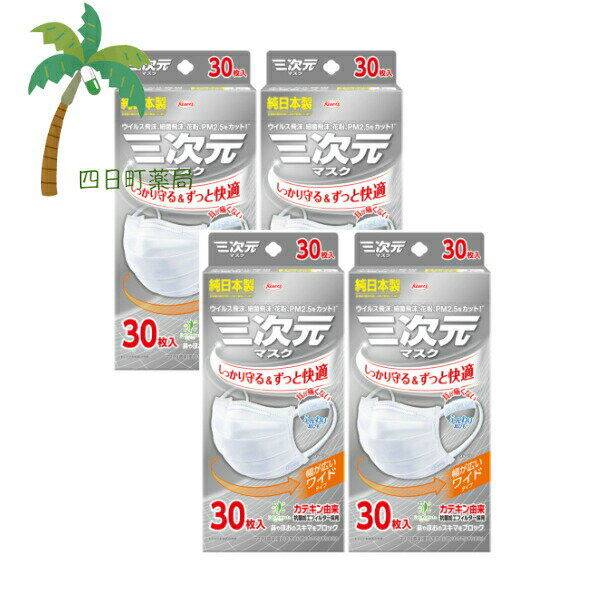 【興和】三次元マスク すこし大きめ Lサイズ ホワイト 30枚 [4個セット] 純日本製 耳が痛くな・・・