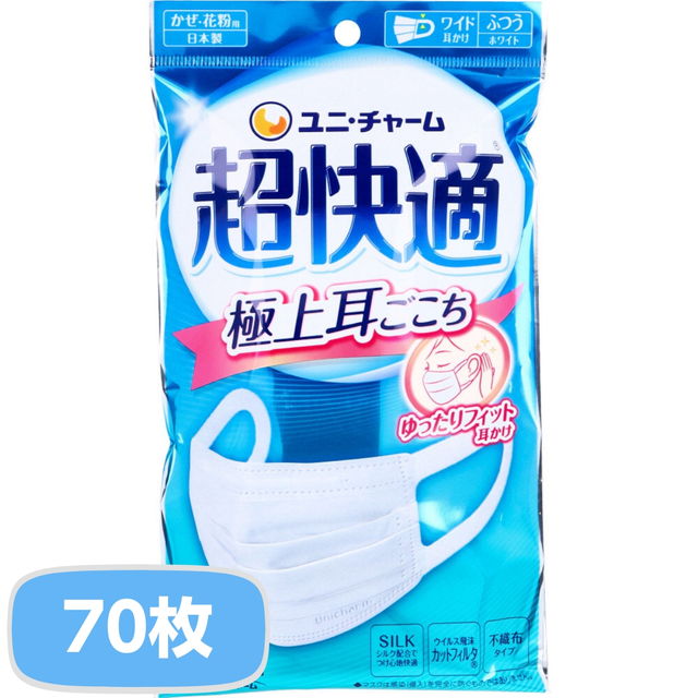マスク 不織布 超快適マスク 極上耳ごこち かぜ・花粉用 ホワイト ふつうサイズ 10袋 70枚入 ・・・