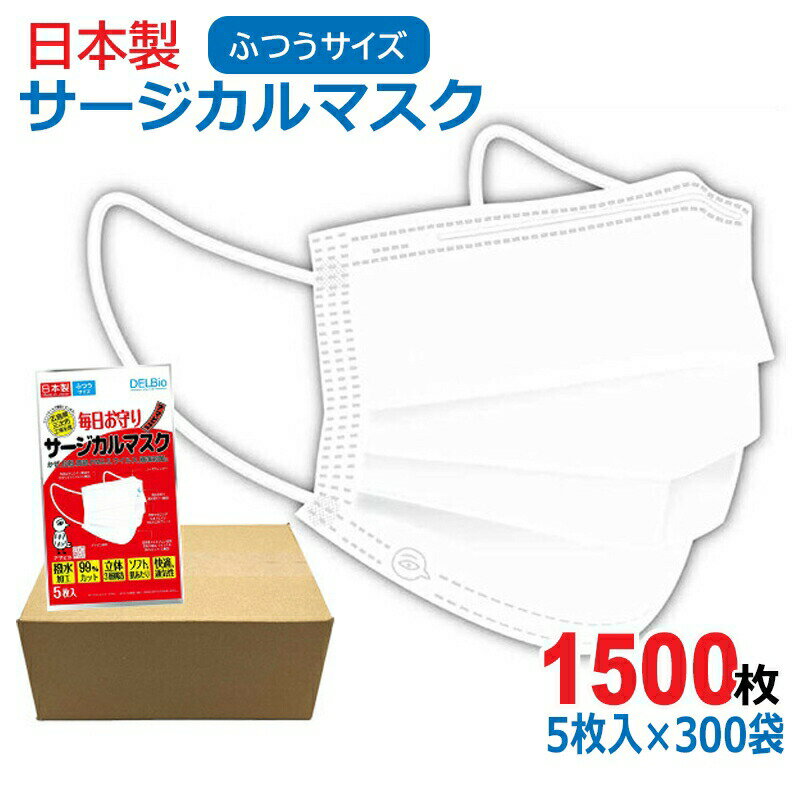 日本製 サージカルマスク 大人用 1500枚(5枚入×300袋) ホワイト ウイルス・風邪・花粉対策・・・