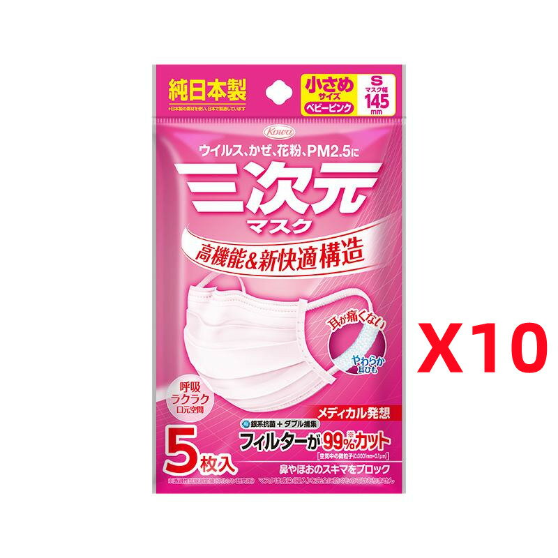 マスク 三次元マスク 5枚入x10袋セット 小さめ Sサイズ ベビーピンク 興和 KOWA コーワ ・・・