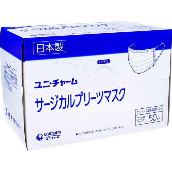 マスク 不織布 ユニ・チャーム サージカルプリーツマスク 4層構造 ふつうサイズ ホワイト 50枚入・・・