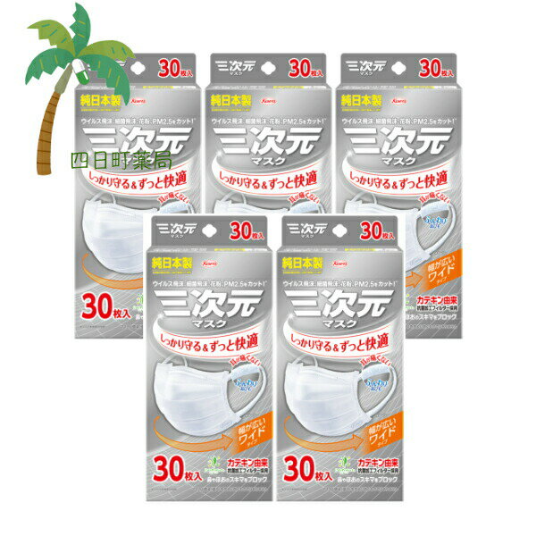 【興和】三次元マスク すこし大きめ Lサイズ ホワイト 30枚 [5個セット] 純日本製 耳が痛くな・・・