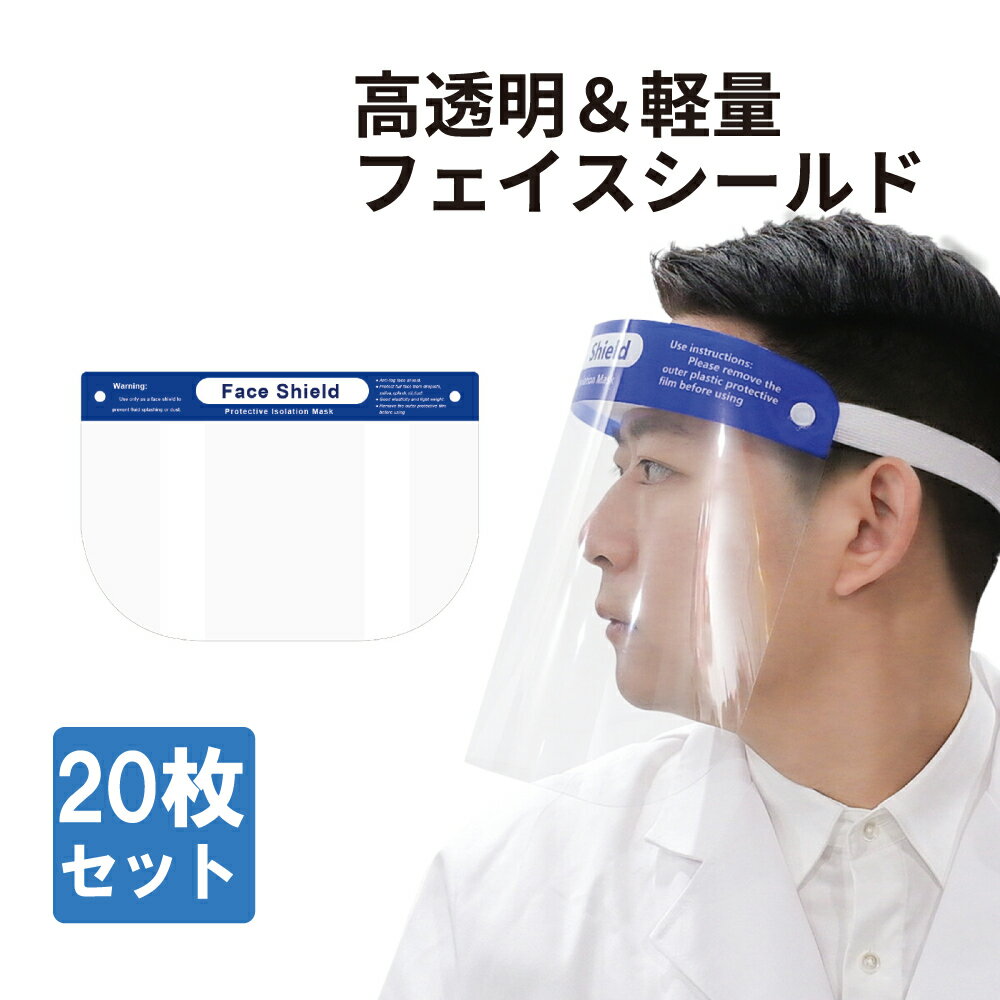 フェイスシールド 20枚セット 在庫あり マスク メガネ併用可能 軽量 目立たない 医療用 フェイス・・・