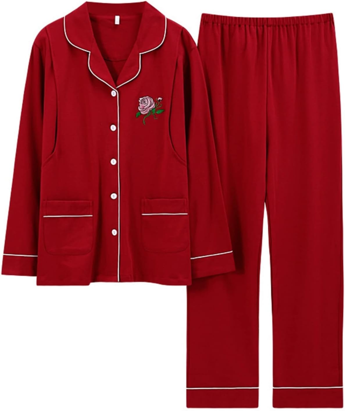 パジャマ レディース マタニティ 秋冬 綿100 長袖 ルームウェア M ローズ柄 前開き 上下セッ・・・