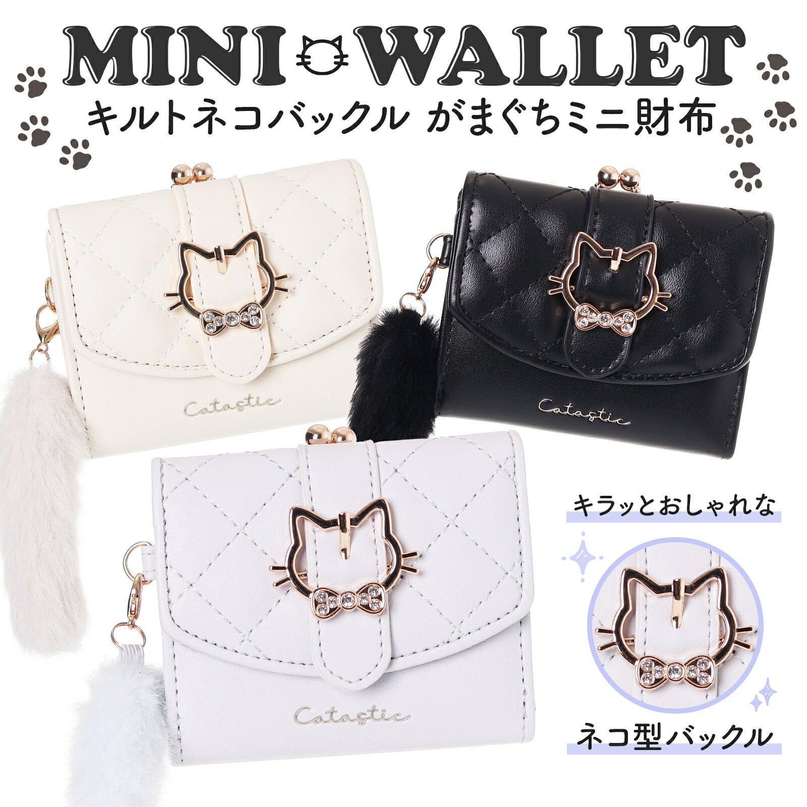 ミニ財布 レディース がま口 小銭入れ かわいい 合皮 キルト ネコバックル コンパクト ウォレット・・・