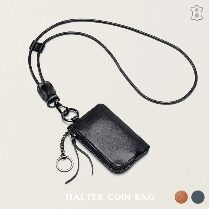 本革 コインケース コンパクト 小銭入れ 軽量 キーチェーン リングフック ネックストラップ付き ミ・・・