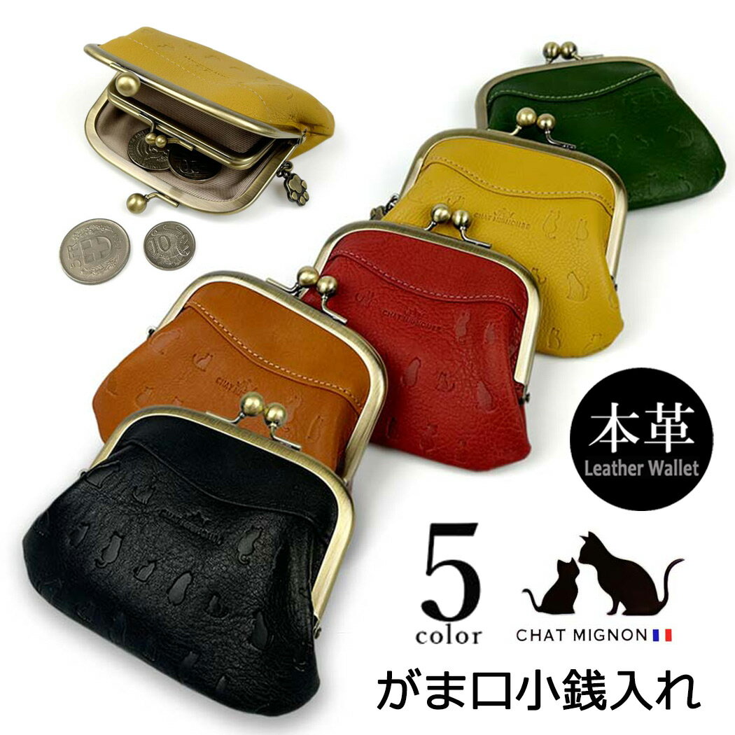 ガマ口 ミニ財布 小銭入れ コインケース ウォレット シャーミニヨン 猫柄 本革 牛革 カウレザーリ・・・