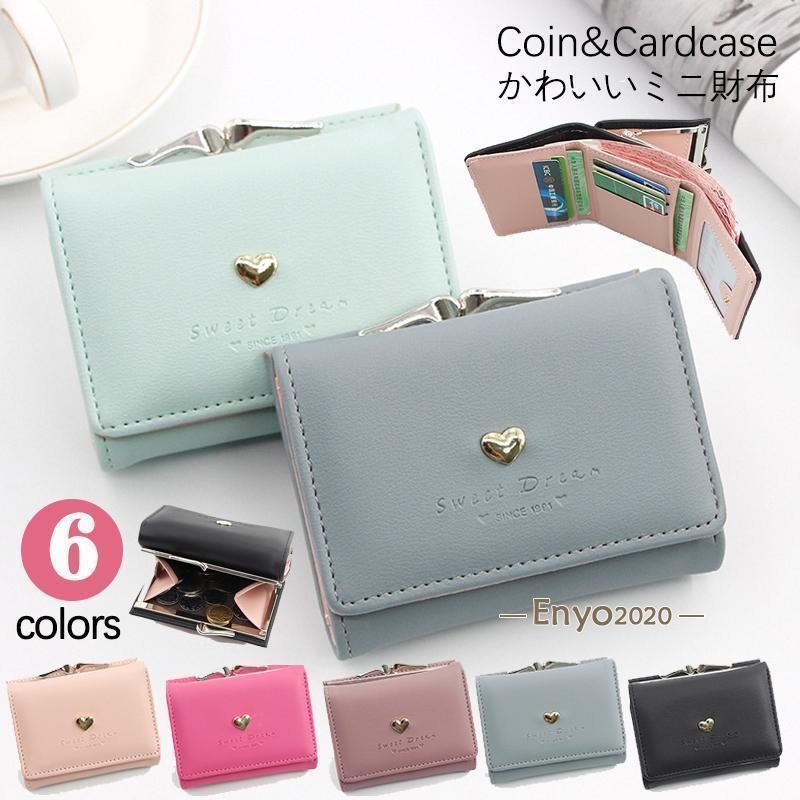 レディースミニ財布 がま口 三つ折り短財布 ウォレット コンパクト 可愛い ハート カードいれ 小銭・・・