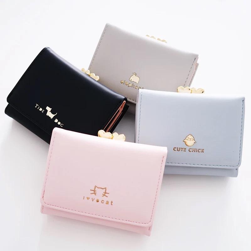 猫 財布 3つ折り財布 折財布 さいふ サイフ ミニ ボックス型 ボックス型小銭入れ 小さい カジュアル 合成皮革 雑貨 グレー ブラウン ブラック 黒