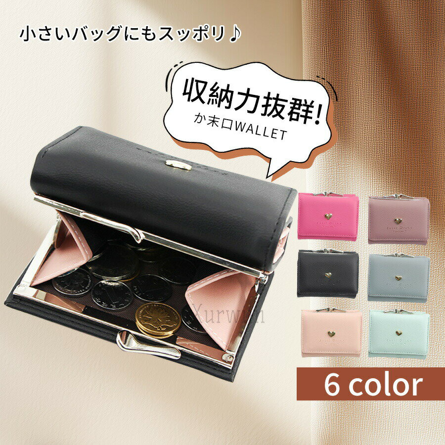 レディースミニ財布 がま口 三つ折り短財布 ウォレット コンパクト 可愛い ハート カードいれ 小銭・・・