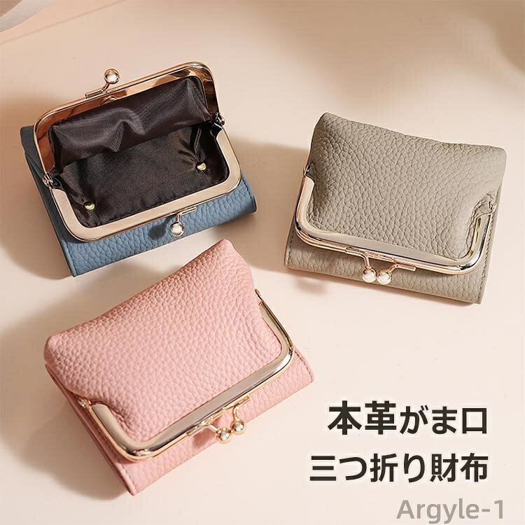 三つ折り財布 レディース 牛本革 取り出しやすい がまぐち 短財