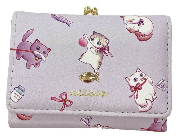 necoco がま口ミニ財布 A48-2 パープル ネコ柄 ねこ柄 猫グッズ 猫好きさん 猫派・・・