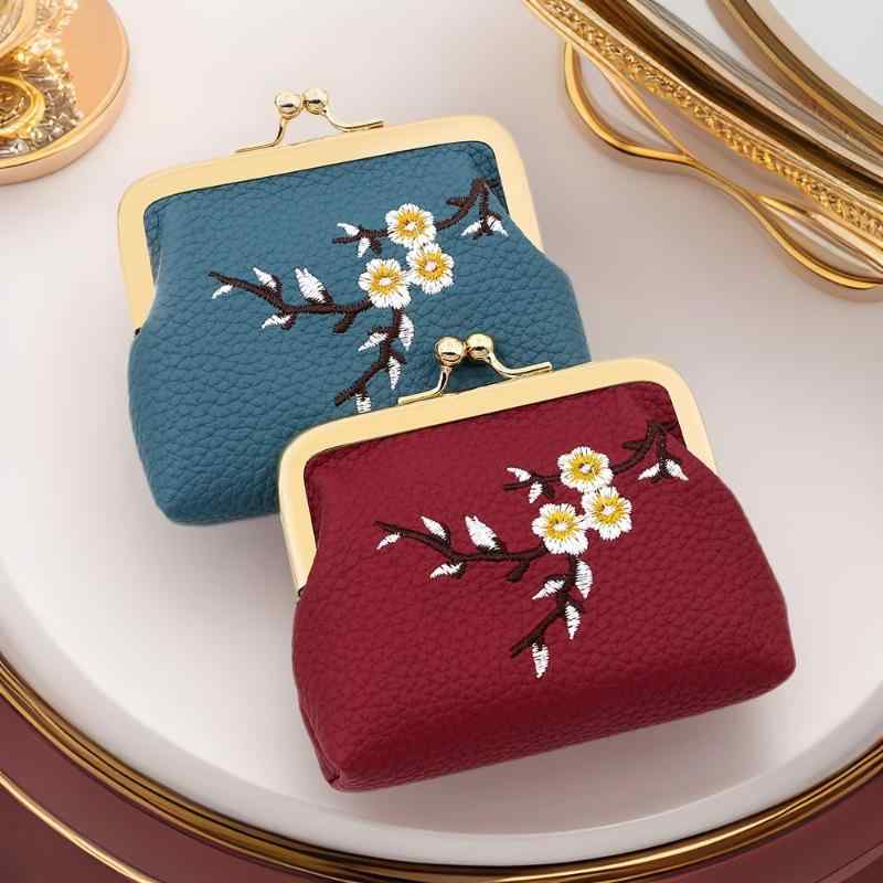 小銭入れ レディース がま口 ミニ財布 PUレザー 刺繍 花柄 コインケース コンパクト ウォレット・・・