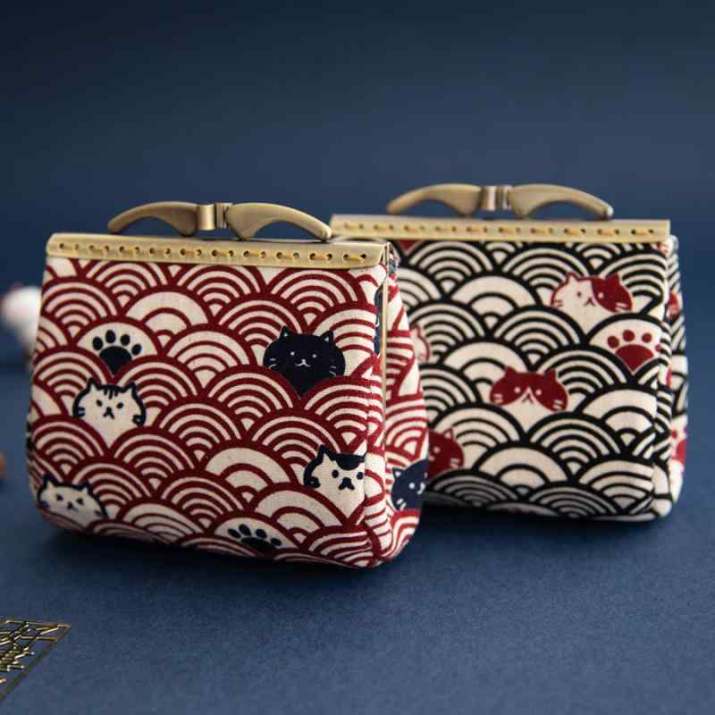 がま口 ポーチ 小銭入れ レディース ミニ 財布 コインケース レトロ カード 和風 バッグ 猫 ギ・・・
