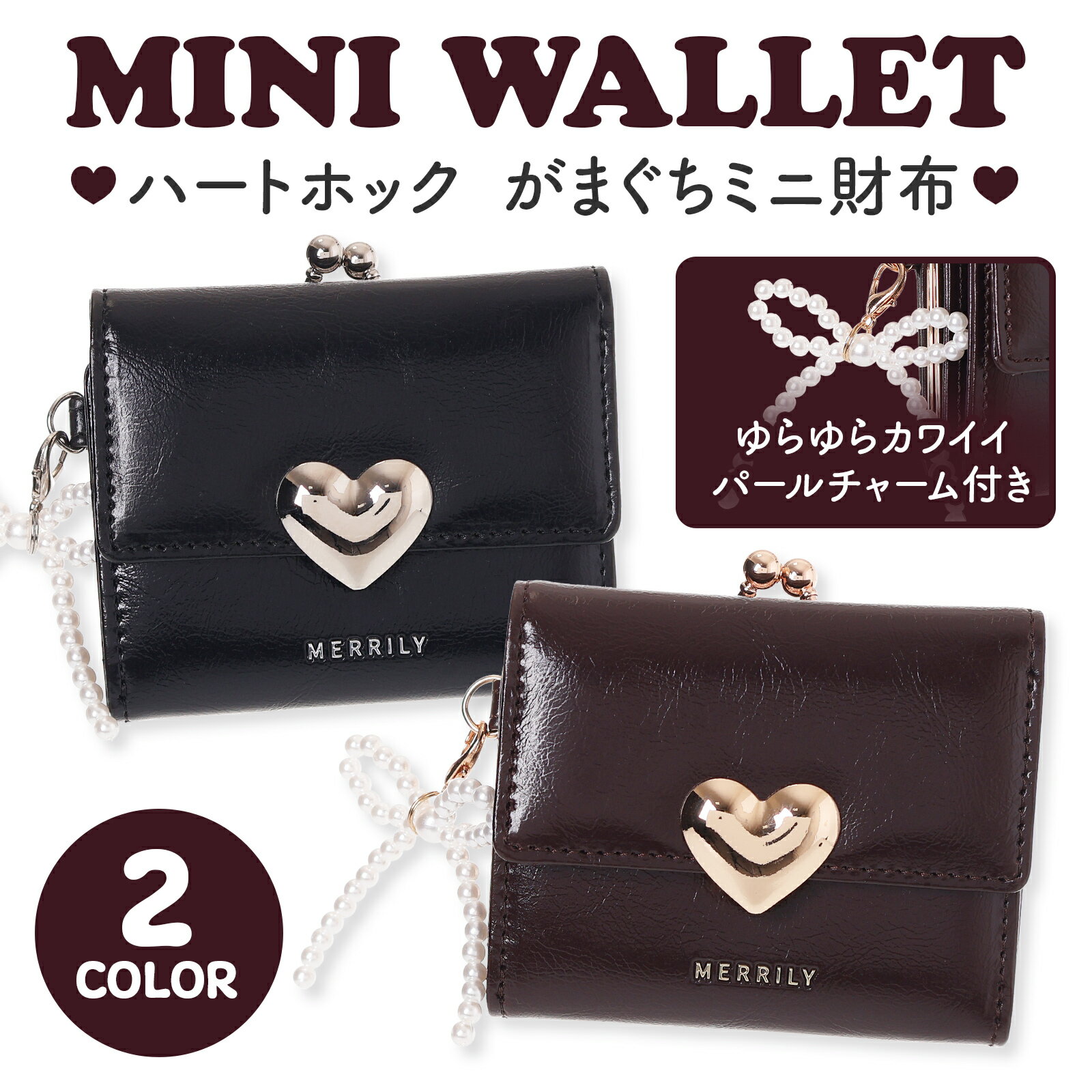 ガーリー リボン ハート スタッズ きゅるるんりぼん がま口 三つ折り ミニ財布 ミニウォレット 三・・・