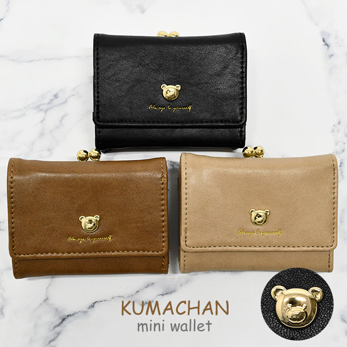 くま クマ 熊 グッズ くまグッズ 財布 フェイクレザー ベア がま口 三つ折り ミニ財布 ミニウォ・・・
