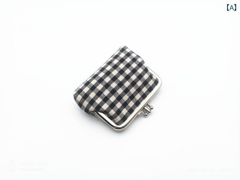 小銭入れ レディース ミニ 財布 コインケース レトロ がま口 収納 チェック ポーチ ブラック レ・・・