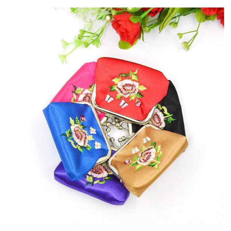 財布 レディース 刺繍 がま口 小銭入れ 混色 花柄 絹 織物 ミニ財布 ウォレット エレガント・・・