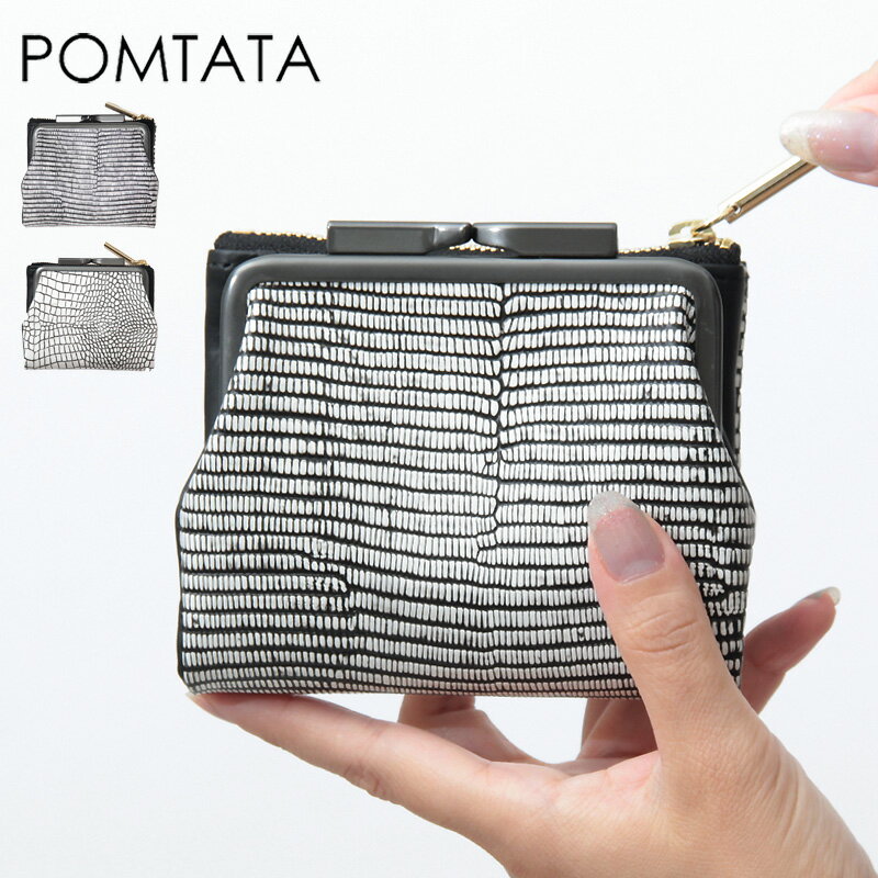 【クーポン】ポンタタ 財布 がま口 pomtata 二つ折り財布 ミニ財布 本革 リザード型押し レ・・・