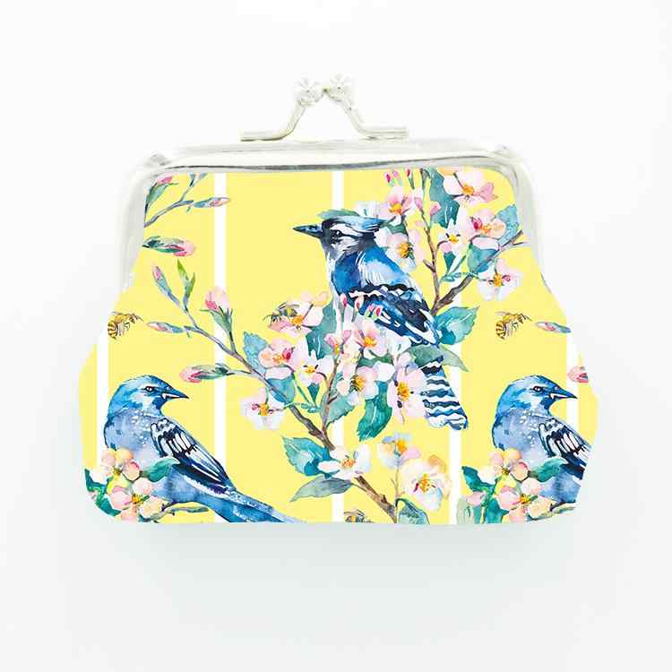 がま口 ミニ財布 ユニセックス PUレザー 熱帯風情 花鳥 フクロウ オウム アニマル柄 手書き風プ・・・