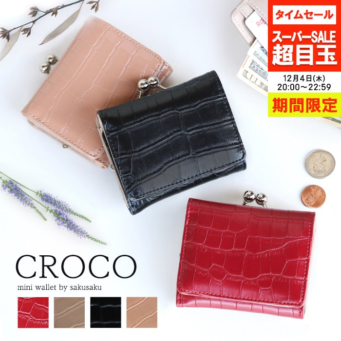 がま口財布なのに大人っぽい、クロコ柄のがま口ミニウォレット