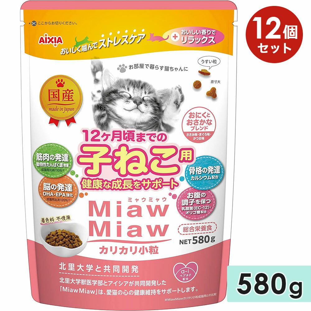 12ヶ月頃までの子猫用★アイシア ミャウミャウ カリカリ小粒 子ねこ用 おにくとおさかなブレンド 580g キャットフード ドライ MiawMiaw 発育・お腹のケア 国産