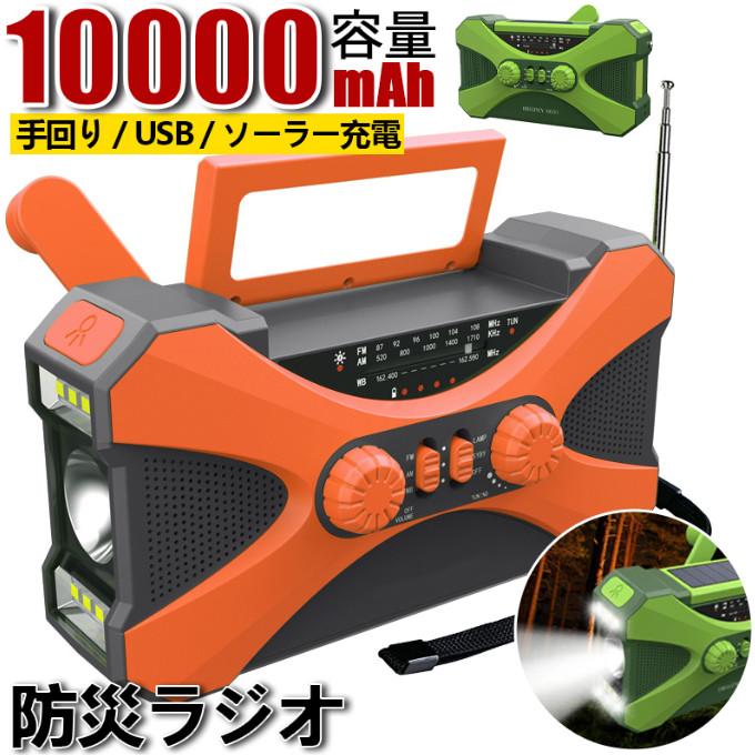 防災ラジオ 多機能 10000mAh 大容量イヤホンジャック付 ポータブル電源 手回しラジオ ソーラ・・・