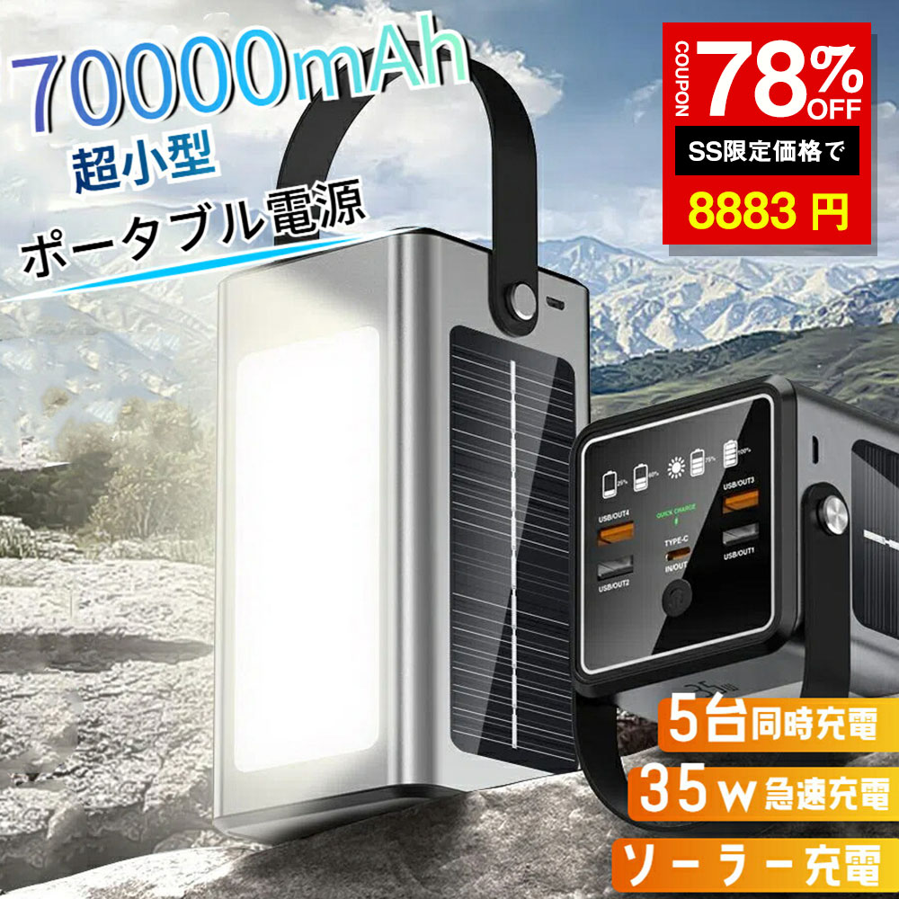 \SS激安 78%OFF→8880円/ポータブル電源 大容量 70000mAh ソーラー充電 モバイ・・・