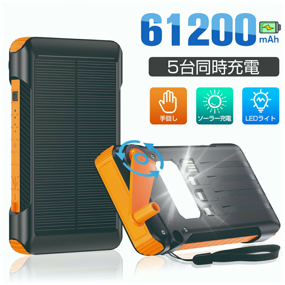 【楽天スーパーSALE】ソーラーモバイルバッテリー 大容量 61200mAh 手回し充電 モバイルバ・・・