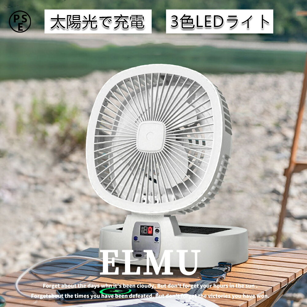 コンパクト なのに大風量 ソーラー充電 USB充電 ライト付き ハンドル付き 持ち運べる 充電式 折り畳み扇風機 アウトドア キャンプ 防災 敬老の日 ギフト プレゼント