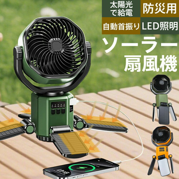 ソーラー 扇風機 キャンプ アウトドア 持ち運び 屋外 多機能 防災グッズ 懐中電灯 折りたたみ 4・・・