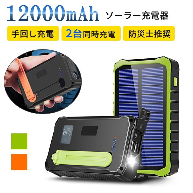 モバイルバッテリー 大容量 ポータブルバッテリー ソーラー 手回し 12000mAh 有線 3Way・・・