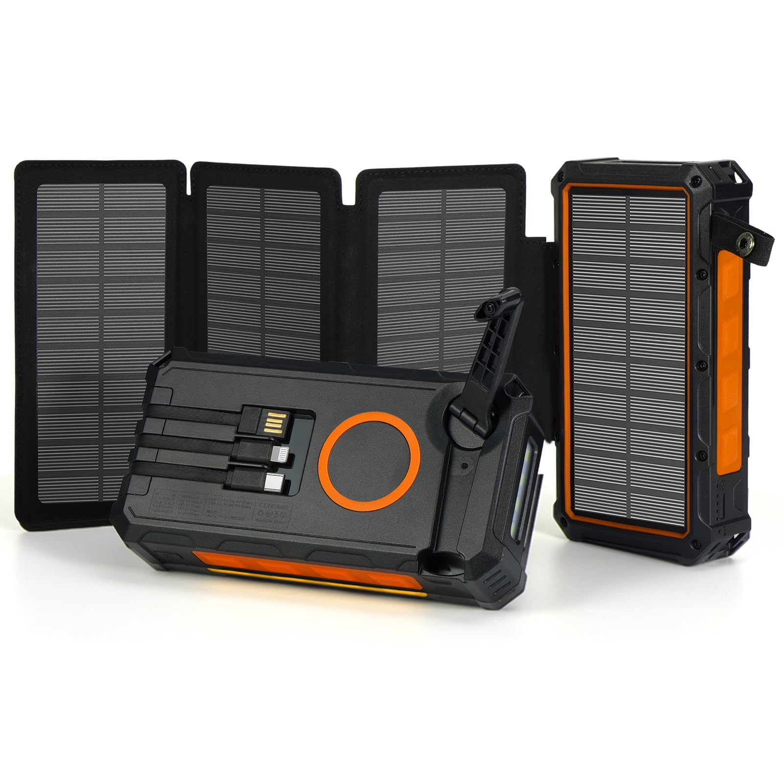 手回し充電 ソーラー充電器 大容量 63200mAh 急速充電 モバイルバッテリー 3本ケーブル付 2台同時充電 3way蓄電 IPX7 防水 耐衝撃 LED SOS スマホ