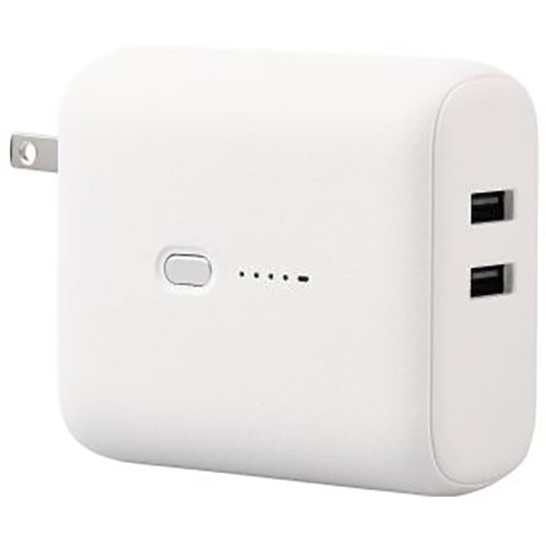 エレコム AC充電器一体モバイルバッテリー(5000mAh/12W/A×2) DE-AC06-500・・・