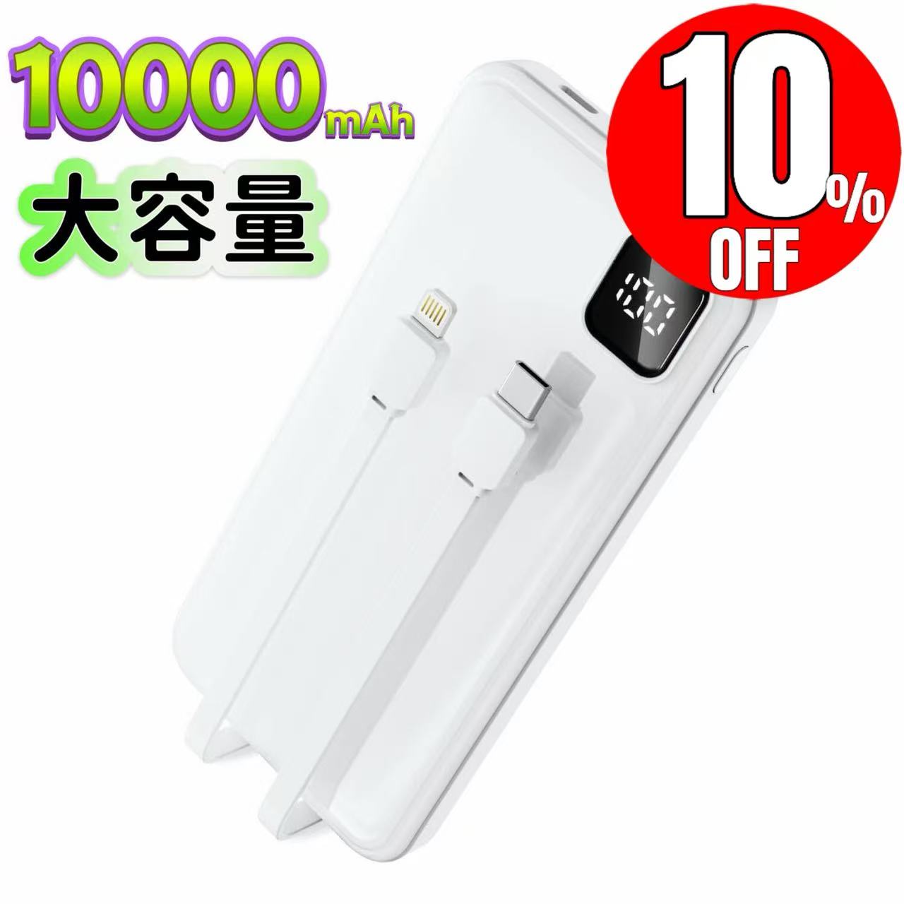 モバイルバッテリー 10000mah 軽量 ケーブル内蔵 楽天大特集フェア