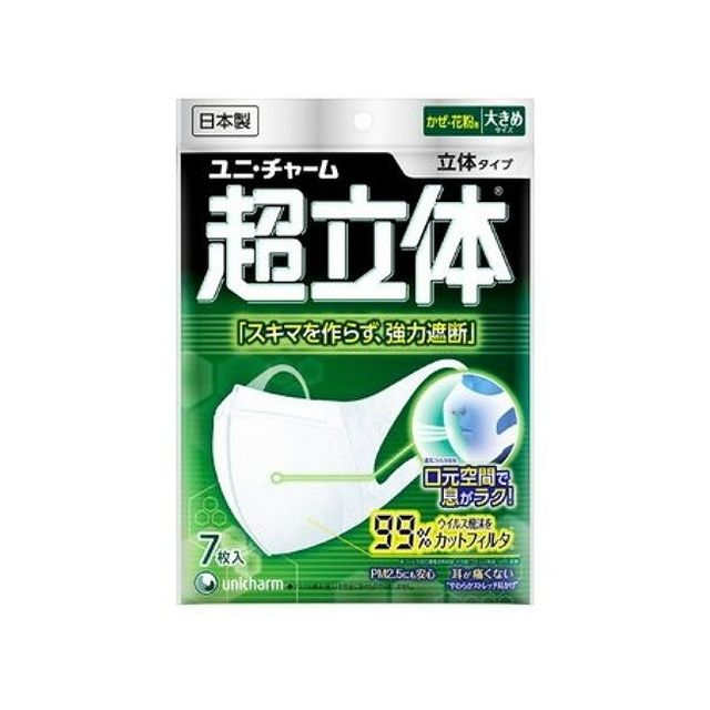 \レビュー特典有/ユニ・チャーム 超立体マスク大きめ [単品内容量/7枚] | ウイルスカット マス・・・