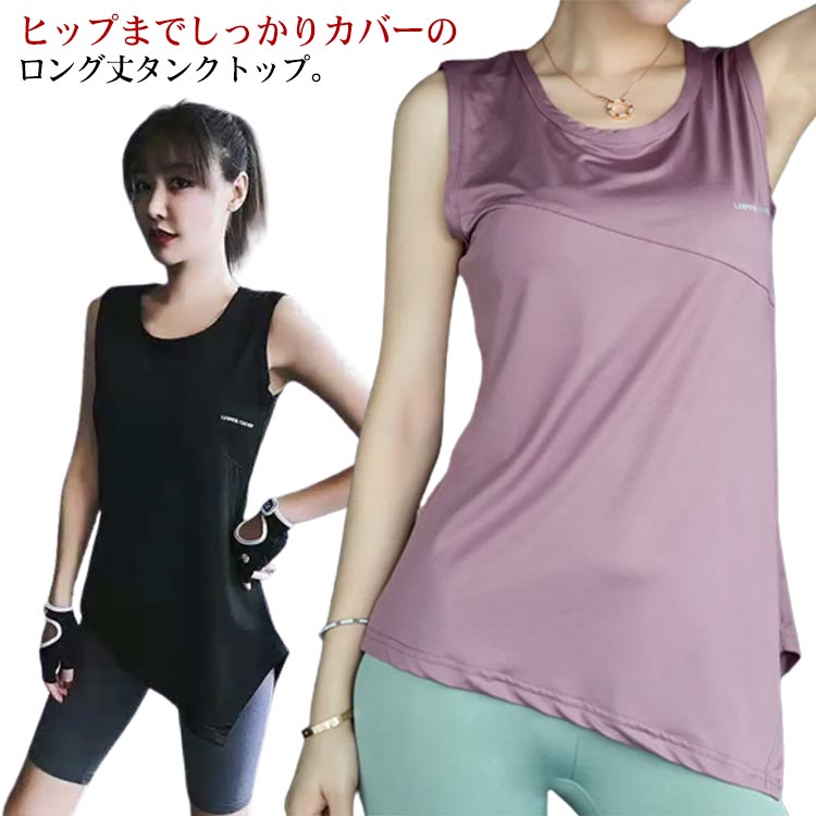 ヨガウェア トップス ロング丈 体型カバー タンクトップ お洒落 レイヤード スポーツウェア レディ・・・