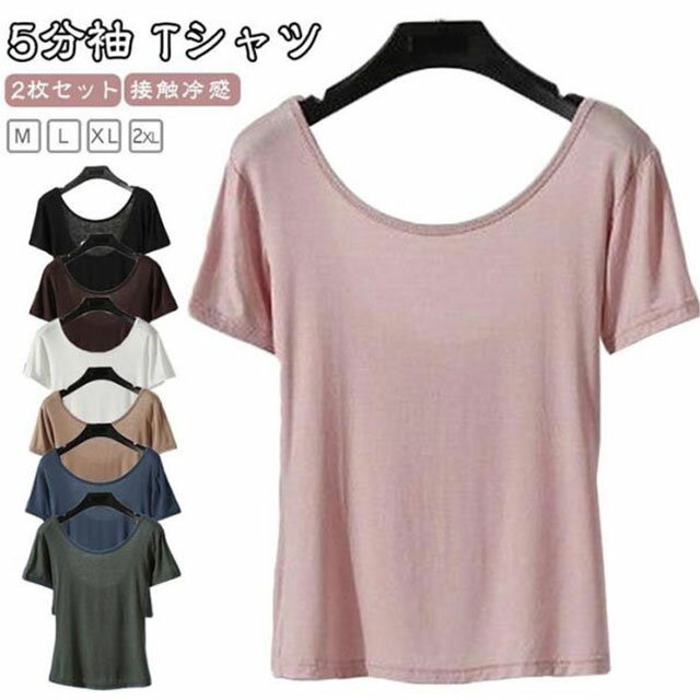 サマー レディース 半袖 接触冷感 トップス 5分袖 Tシャツ