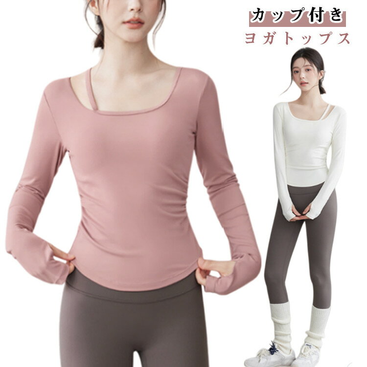 カップ付き トップス スポーツウェア ヨガウェア 長袖 ヨガシャツ 速乾 一体型 ロング丈 ヨガウェ・・・