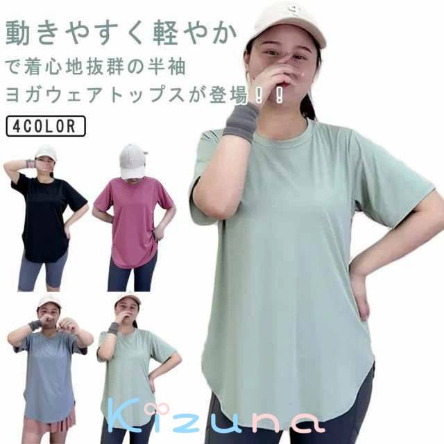 ヨガウェア トップス Tシャツ スポーツウェア 半袖 ロング丈 ダンス ヨガ ホットヨガ ジム 重ね・・・