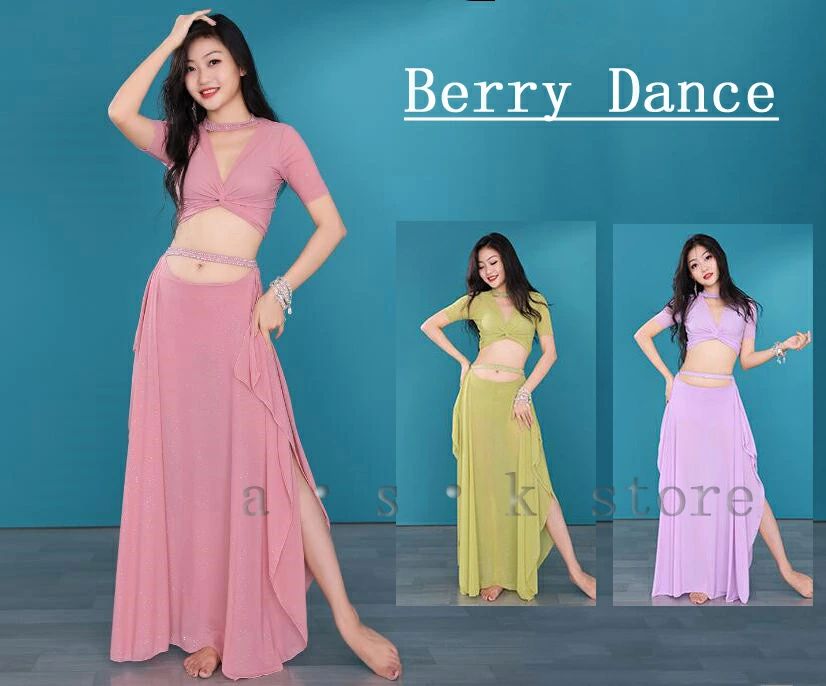 ベリーダンス 衣装 セット ベリーダンスウェア 上下セット ロング丈ダンススカート ラメ入り へそ出・・・