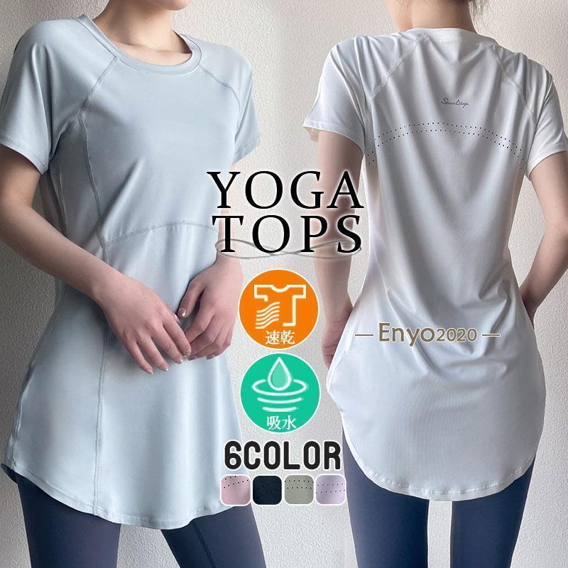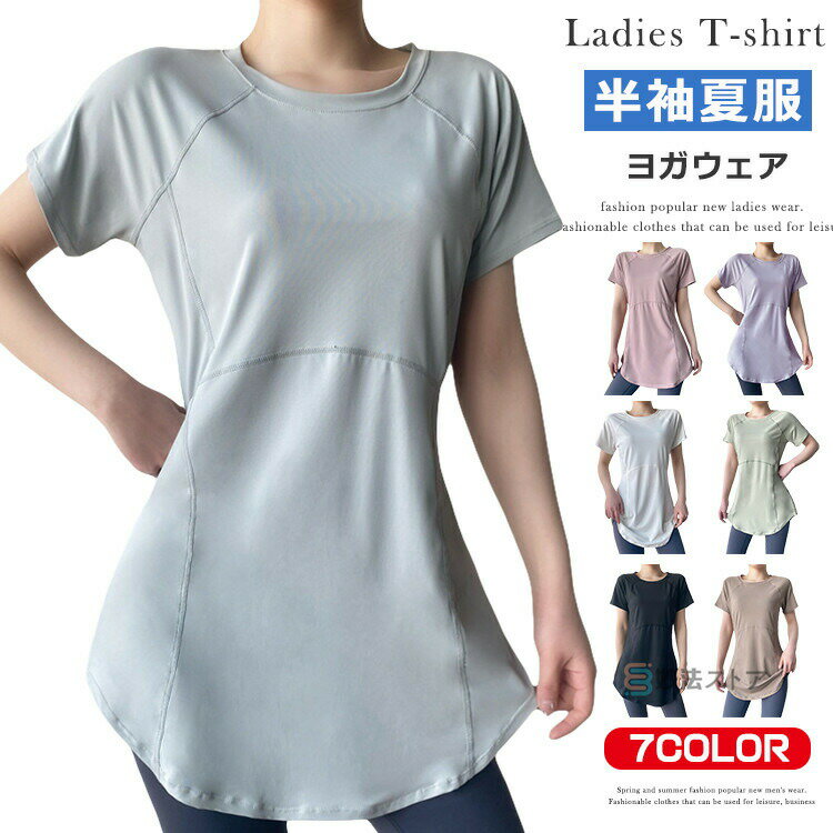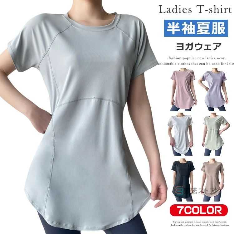 ヨガウェア ウェア レディース 春 トップス ロング丈 半袖 ピラ