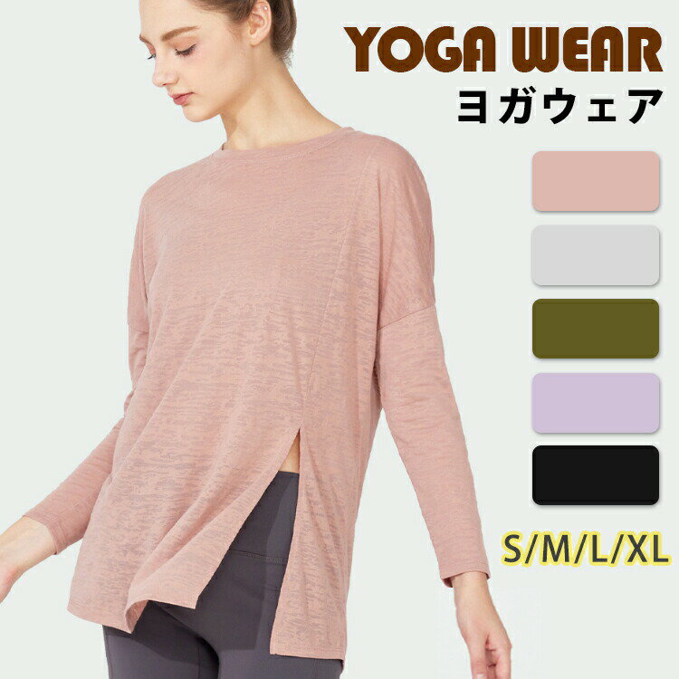 【長袖】スプリットティーシャツ ヨガウェア スポーツウェア トップス レディース Tシャツ トレーニ・・・