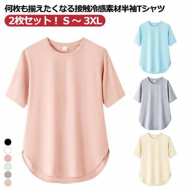 レディース 半袖 接触冷感 トップス 夏 夏用 サマー tシャツ 2枚組 5分袖 春夏 ヨガウェア ・・・