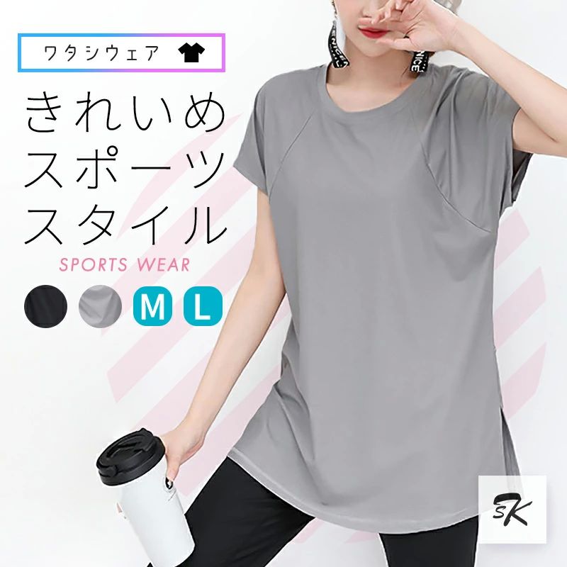 ヨガトップス ヨガウェア 半袖Tシャツ トップス レディース スポーツウェア ロング丈