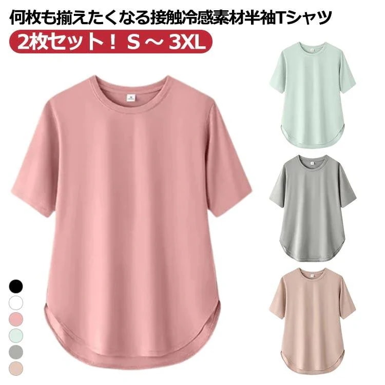 半袖 レディース 2枚組 トップス 夏 夏用 サマー 接触冷感 ロング丈 5分袖 春夏 ヨガウェア ・・・