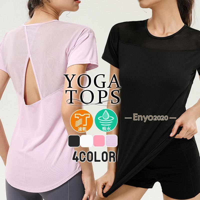 送料無料 ヨガウェア トップス Tシャツ 半袖 スポーツ ピラティス ホットヨガ フィットネス ジム ダンス メッシュ 可愛い おしゃれ レディース