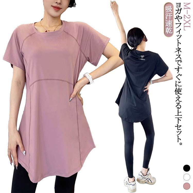 ヨガウェア トップス トレーニングウェア 半袖 スポーツウェア ジョギング ゆったり ホットヨガ おしゃれ ヨガ ジム ロング丈 ダンス yoga
