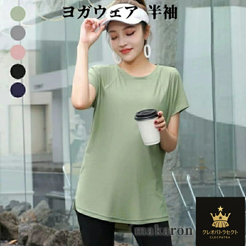 半袖 ヨガtシャツ ヨガウェア レディース スポーツウェア 運動着 半袖tシャツ トップス ロング丈 体型カバー 薄手 ウェア おしゃれ レディース