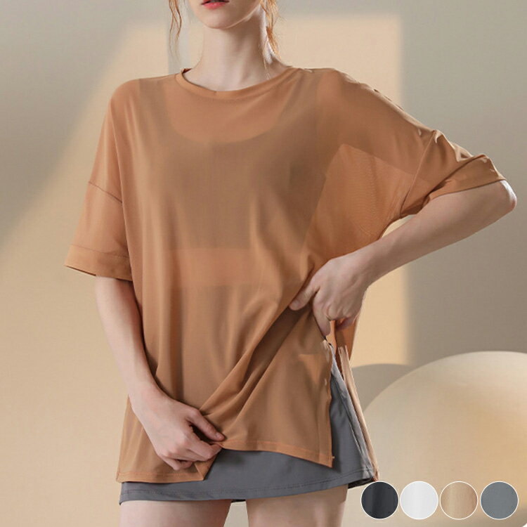 【送料無料】ロング丈 スポーツ ヨガウェア カットソー 夏服 サマー オーバーサイズ 着痩せ 通気 ・・・